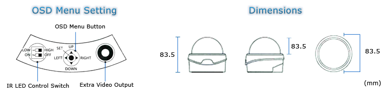 - Motion Detection: On / Off (1 Zone ISO Control/ Output OSD)